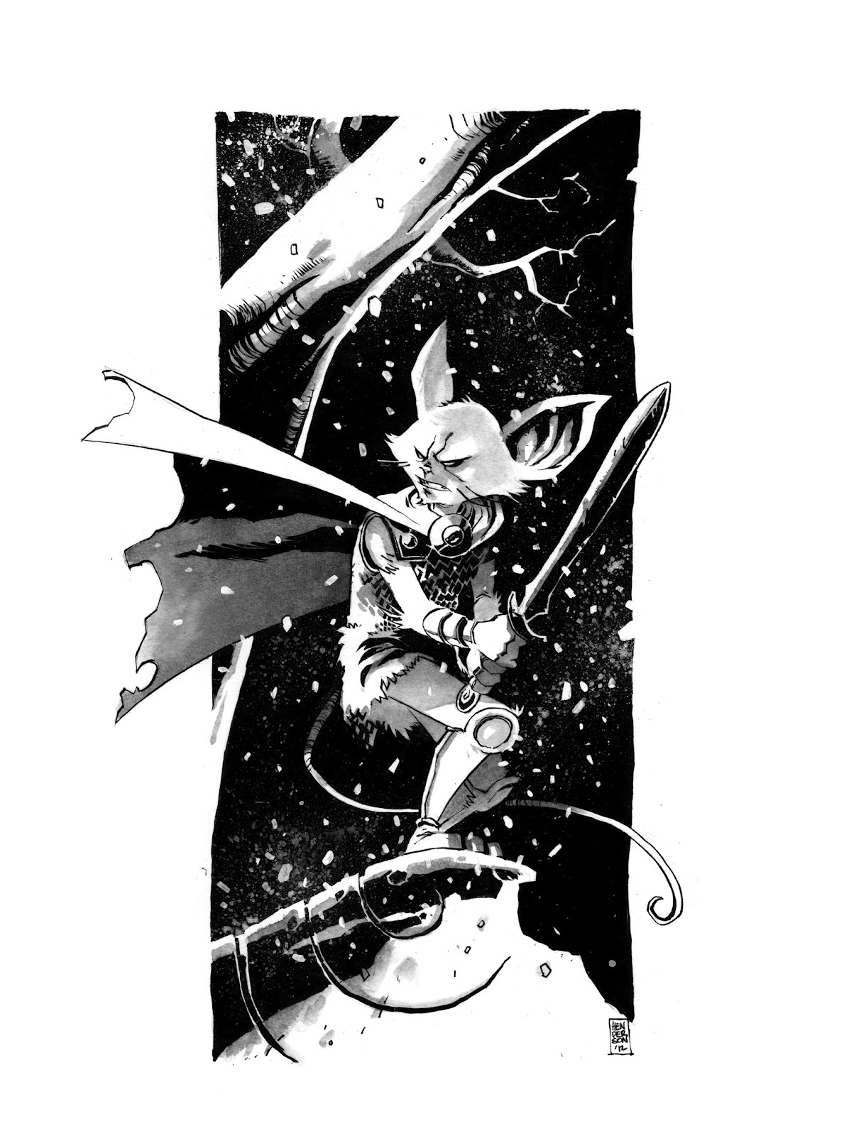 STK666114So on his journey to adulthood he’s always had this story and phrase in the back of his head, he’s always loved Don Bluth’s animation style, The Secret of NIMH was one of his earliest artistic influences, and he just knew one day he was going to get around to doing his own entry into the fantasy, anthropomorphic animal world, and he was going to do the Mice Templar whatever it took. He started developing something in the late ‘90s, that was then simply shelved. He even dropped out of comics himself before starting work on Powers with Brian Michael Bendis in ’99. That series then debuted in 2000, and Mike Oeming got a brand new career handed to him.